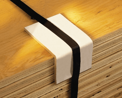 VGuard, a shorter version of VBoard, provides targeted edge protection from the damage caused by cargo straps during shipping and storage of palletized loads or stacked products. This practical, economical cargo strap protector is made to a high degree of precision to ensure the uniform shape and sizing required for automated application systems.
